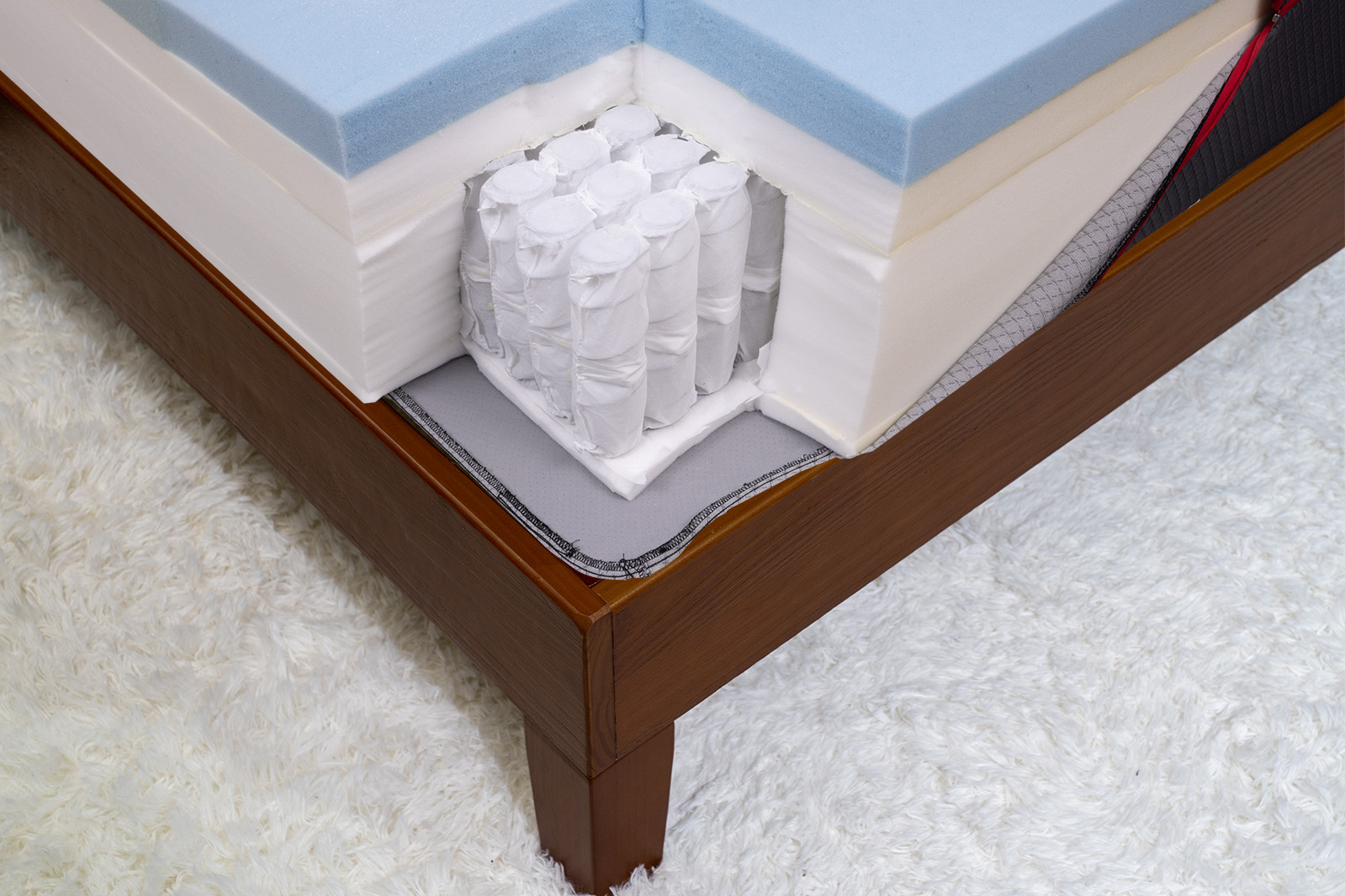 - Layer 4: At the base of the mattress, a 1″ layer of motion-isolation support foam adds structure and reduces motion transfer from one side of the bed to the other.