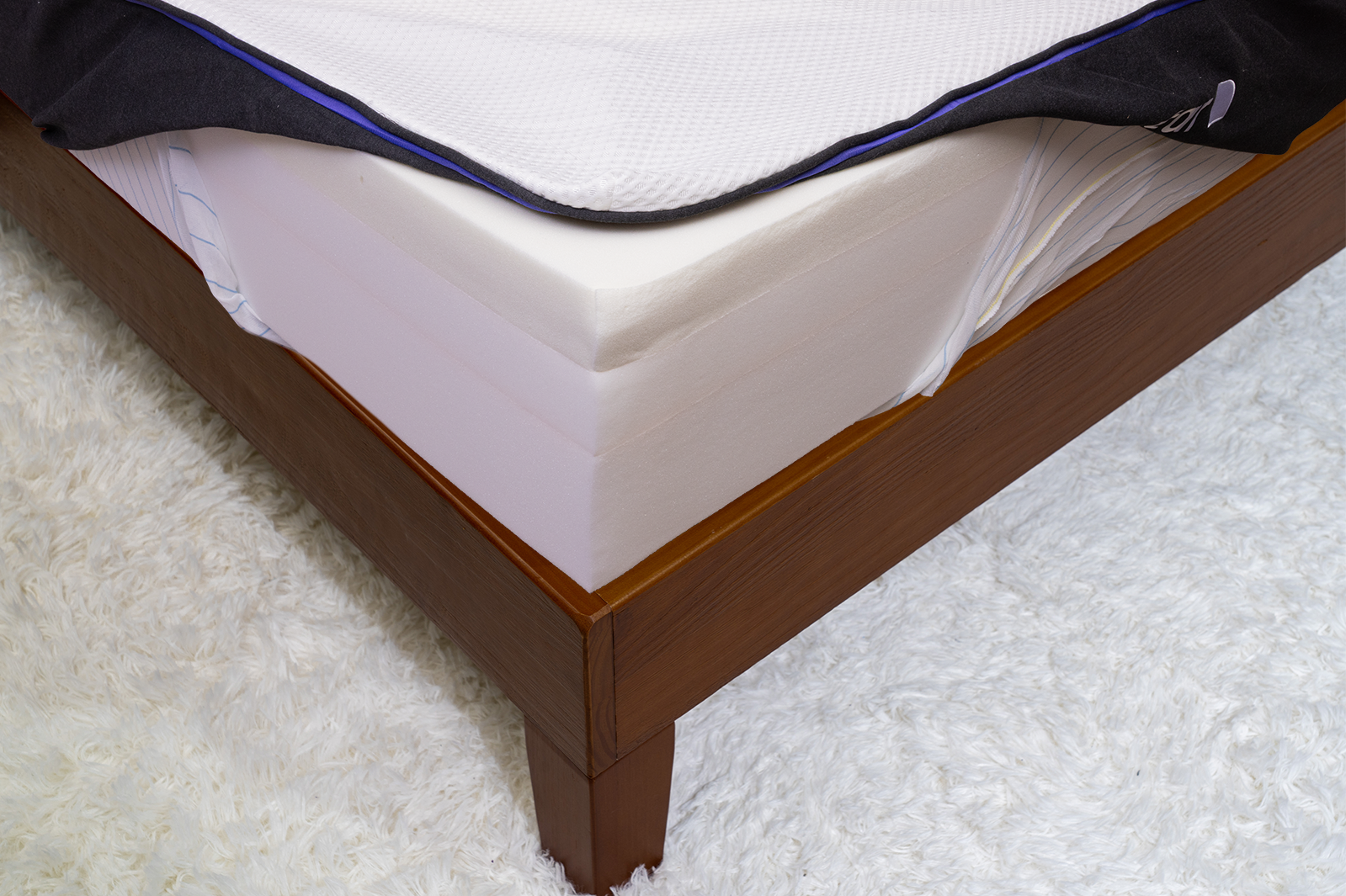 - Layer 2: This 3″ foam layer provides a buffer between the top comfort foam and the base, promoting spinal alignment and adding some responsiveness.